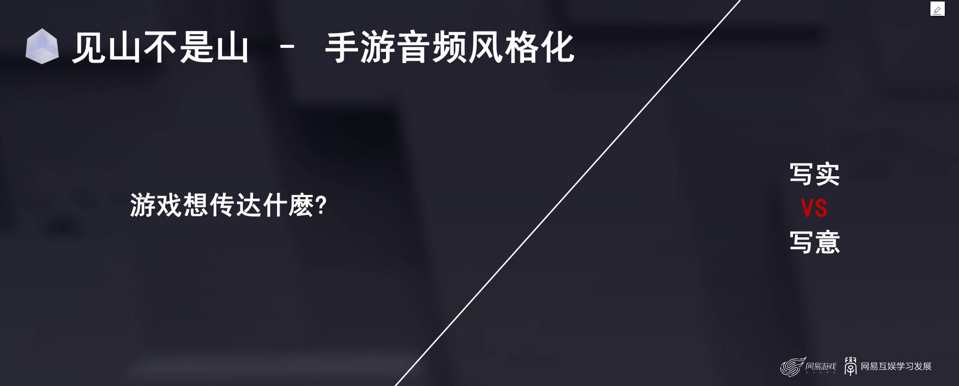 接下来我们还需要一路往上追求是吧,我当我走到半山腰的时候,其实是一个“见山不是山”的第二阶段,我认为这个阶段最重要的就是手游音频的风格化。但风格化其实是一个比较虚的一个主题对吧?其实他更代表的是说游戏该传达什么。因此在“见山不是山”的这个阶段中我们更多的是对于写意的追求。