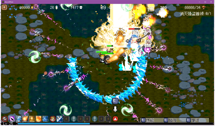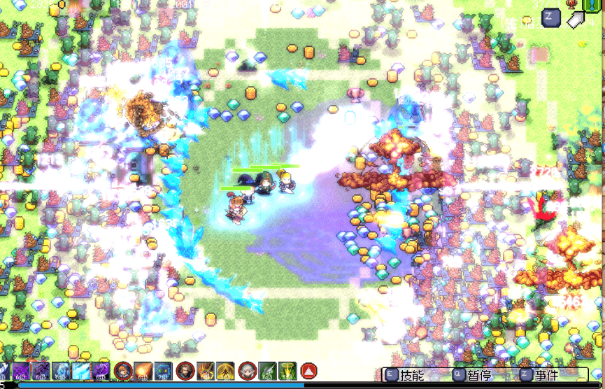 游戏过程中,玩家可以随机选择不同类型的技能,每种技能都可自由搭配,玩家最多可携带6种技能,伙伴最多可携带两种技能,进入随机事件里还可获得外观豪华且强大的神技!助你割草更加爽快舒适!