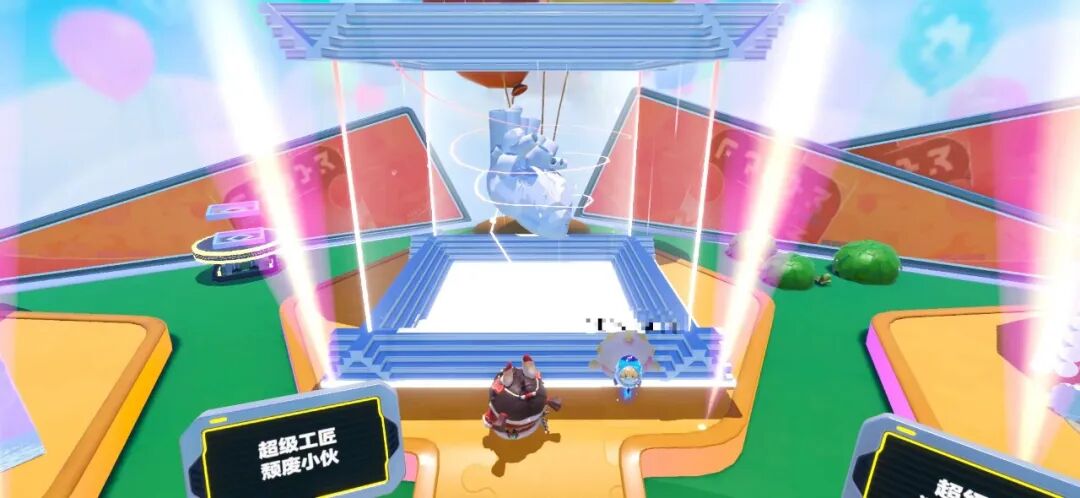 就在我沉浸于这种感性瞬间时,一个陌生蛋不由分说地就把我抱举了起来,推着我向前走——没错,「蛋仔岛」的社交从来都是如此简单直接,人与人之间的距离仅仅只有一个「抱一抱」的动作。我就这样被ta带向了「心妨」展台,一种突如其来的震撼「袭击」了我。