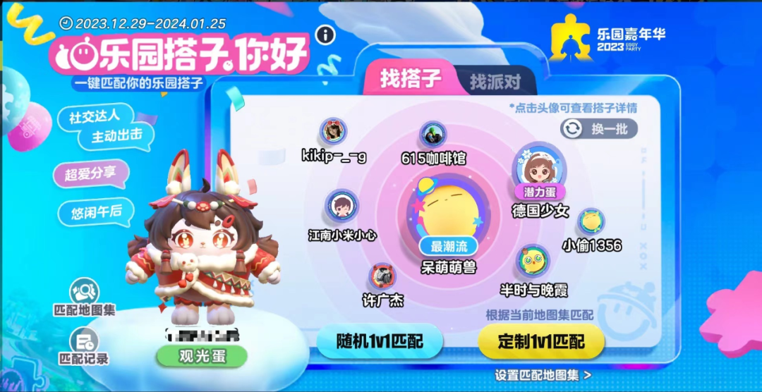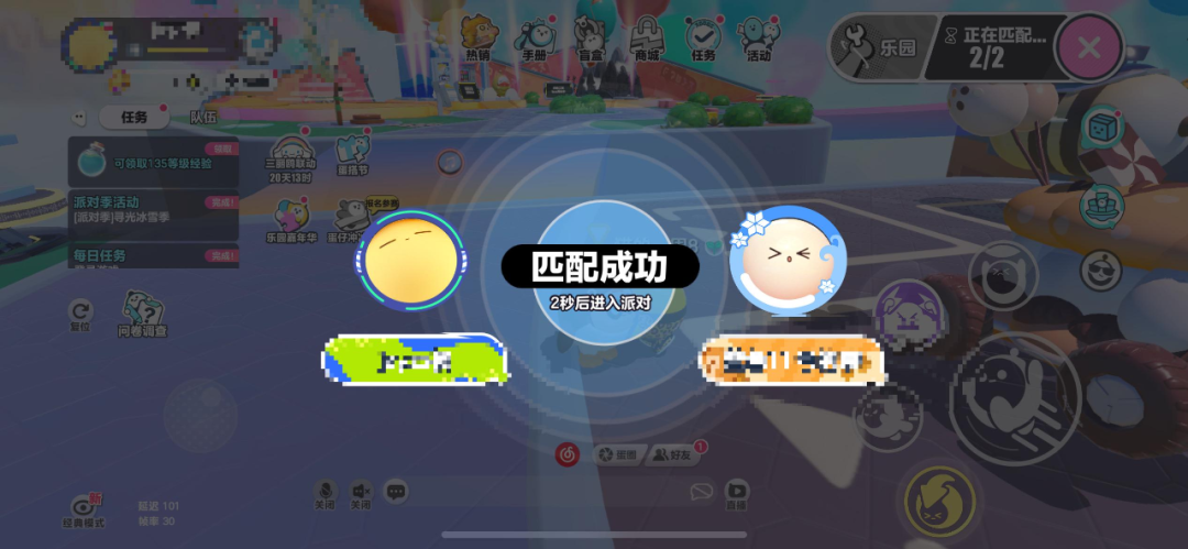 根据我的年度地图集和年度游玩标签,系统自动匹配了一个跟我兴趣相近的搭子,经过一番简单的投票达成共识之后,我便跟搭子便进入了一张闯关地图的体验,不得不说,这种基于相似爱好的匹配机制,很好地契合了游戏自身的「蛋搭子文化」。