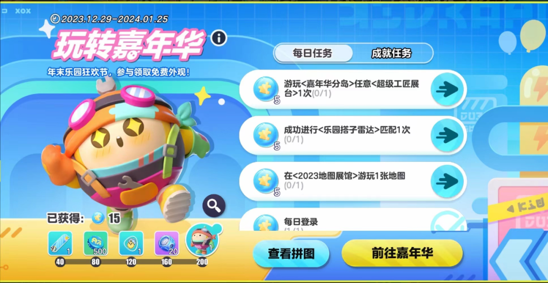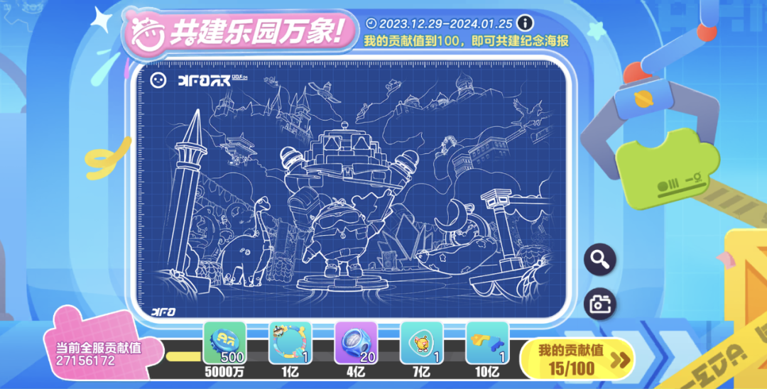值得一提的是,无论是逛了超级工匠展台,还是匹配乐园搭子,都能够收获一种叫「贡献值」的东西,可以在「玩转嘉年华」活动中解锁福利和外观,还可以用于为「共建乐园万象!」纪念拼图海报上色,以另一种形式不断延续游戏的共创精神。