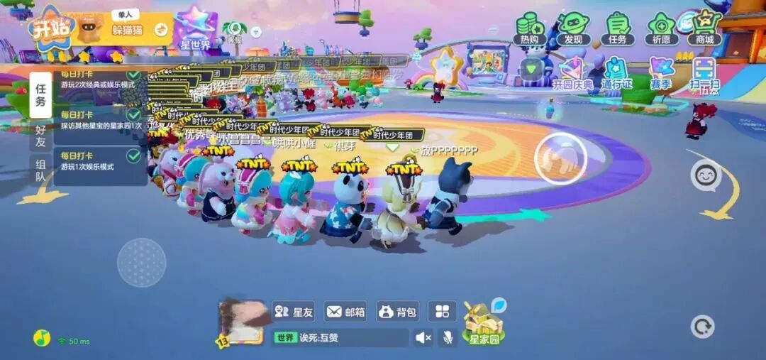 作为“宠粉狂魔”的《元梦之星》,在上线初放出了时代少年团专属游戏地图【时代星舞台】,和【初星代言人】称号,【TNT】专属头饰。在粉丝福利拉满的情况下,还打造了“时代少年团元梦综艺”,代言人亲绘表情包等专属内容,让粉丝直呼“过年”。