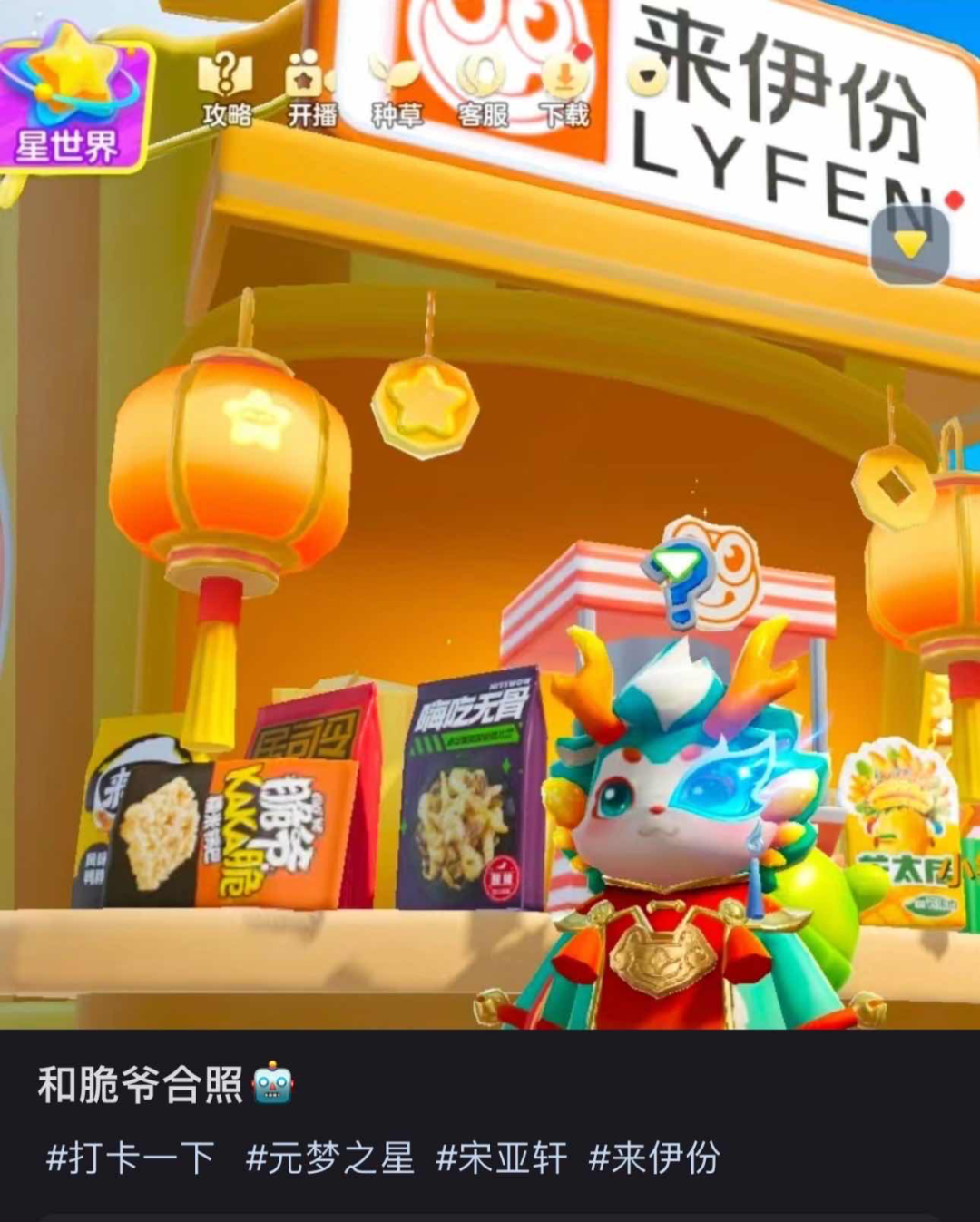 氛围感做足了,接下来要解决的就是将情绪价值释放出来。以与《来伊份》的跨界合作为例,《元梦之星》开展的联动活动并非简单的送福利、发年货,而是贯通了线上线下场景,带动玩家“玩”起来。