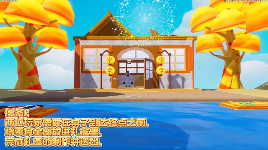 联动地图在关卡任务中通过对玩家行为的驱动,不断给玩家“春节到来”的暗示,在最后一关,玩家需要在“桌子到达终点”之前就完成礼盒的制作并送出,在整体轻松的关卡节奏下加入了些许紧迫感,很容易让玩家联想到儿时的春节,和家长一起赶在某个时点前,制作拜年点心礼盒的场景。