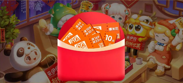 当时,都说到过年送礼了,《元梦之星》和《来伊份》给玩家准备的年货礼物也不含糊——有价值19.9的来伊份爆米花券、无门槛十元代金券和多重满减券,打出“千万「来伊份幸运包」请全国星搭子吃零食!”的宣传口号——“玩游戏”与“请吃零食”的搭配能很自然的联想到春节“和家人好友一起、狂炫年货”的大众记忆。