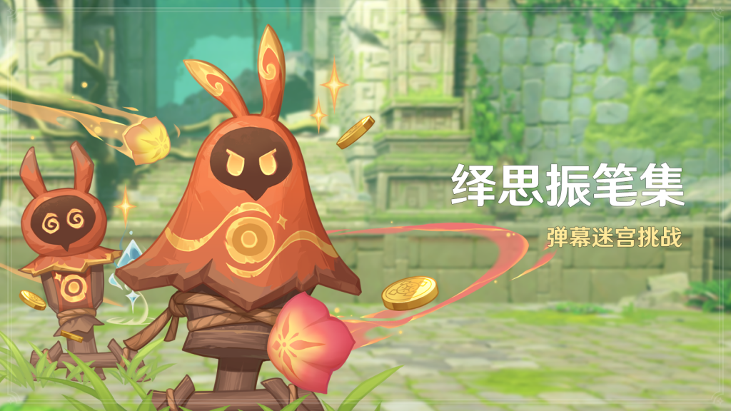 重返蒙德时,旅行者遇见了一位熟悉的轻小说作家,顺着她提供的剧本,将开启一次奇妙的阅读与遐想之旅。旅行者将会跟随剧本进入到一个个神奇的地点,在限定时间内躲避来自四面八方的机关弹幕,并努力收集迷宫币来获得剧本中的奖励。活动开启后的前三天,每天会开启两个新的挑战,共六关挑战。完成挑战可获得原石、大英雄的经验、天赋培养素材等奖励。