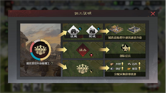 古代战争中,虽然动不动就大喊数万大军,实际上其中真正的核心战斗人员可能不过数千,剩下的就都是临时雇佣来的普通百姓,由他们负责后勤补给、修建工事甚至辅助作战等工作,这些佣工其实也是决定战争胜负的关键,但因为地位不高,常常遭到忽视,如今《率土之滨》通过“佣工系统”,可以让玩家更好的发动人民,助力征伐,在进一步拓展策略空间的同时,也带来了更强的代入感。