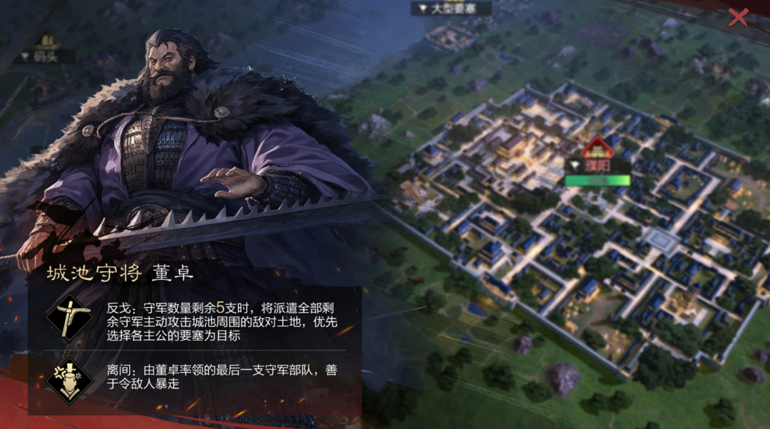 董卓作为大BOSS,其新技能不但强大,且很好的反映了其历史中的特点,【反戈】将让董卓军在处境不利时,反守为攻,主动突袭玩家的要塞,这符合董卓作战勇猛,哪怕人数劣势,也敢正面硬刚的风格;而【离间】的典故则更加著名,无论是他离间吕布,还是最后死于被离间的吕布之手,显然董卓的故事里始终充满了背叛。