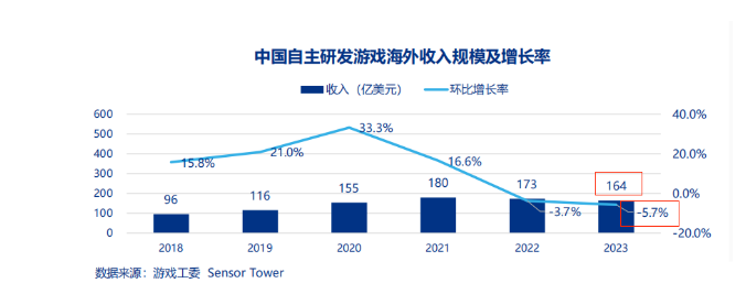 从数据上看,根据中音数协会对外发布《2023 年中国游戏产业报告》显示,2023 年,中国自主研发游戏海外市场实际销售收入约为 164 亿美元,结合 2020 年的 155 亿美元、2021 年的 180 亿美元和 2022 年的 173 亿美元,预计 2024 年中国自主研发游戏海外市场实际销售收入将继续维持超 150 亿+美元的水平。