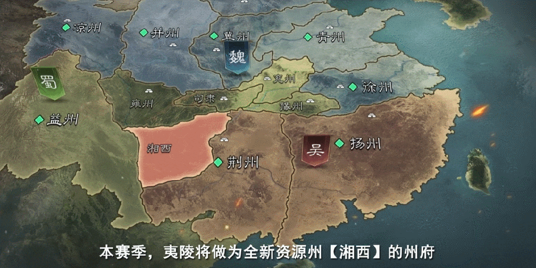 首先就是划分出了全新的资源州“湘西”,包含原荆州南郡及南阳二郡,夷陵则为湘西州府。同时湘西将新增关卡“广成”,可直接通向司隶。这下荆州和益州的势力,就可以围绕湘西展开激烈的争夺,重现夷陵之战的风采!
