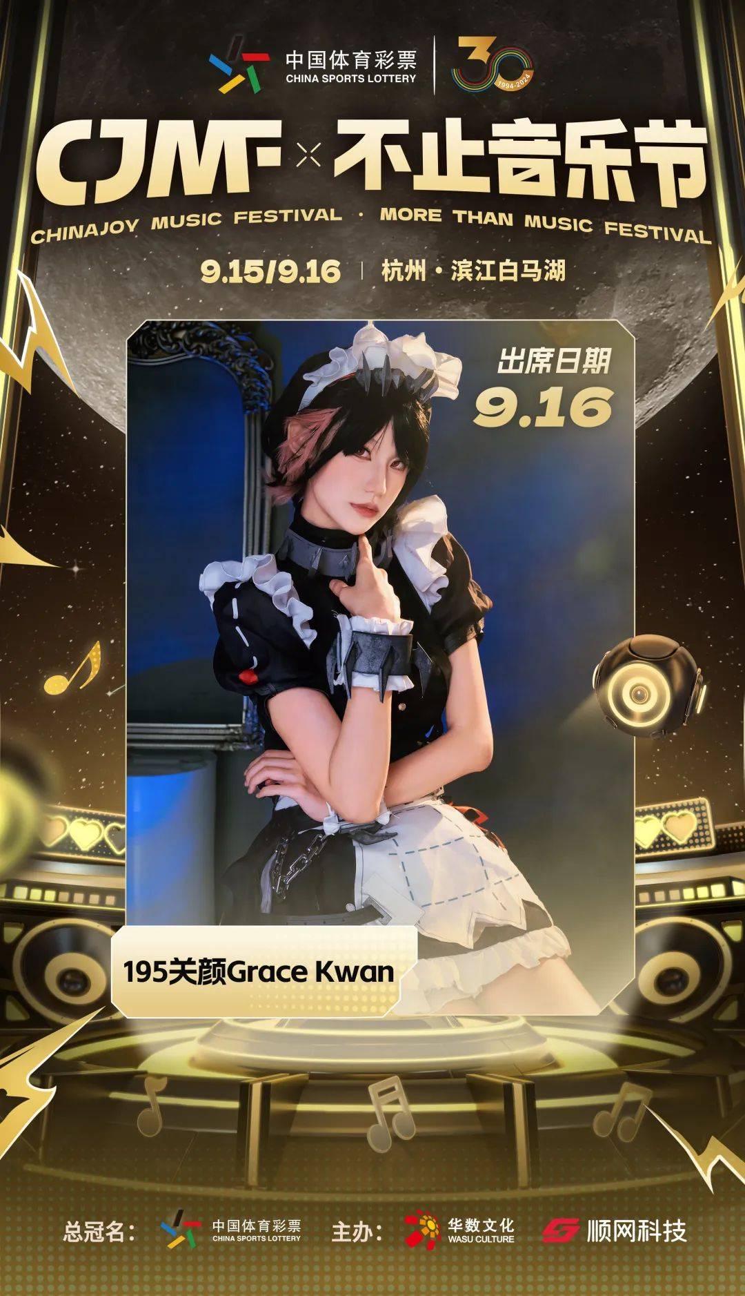 身高188cm 的195关颜GranceKwan用身高和颜值的双重冲击成为了Coser 中最耀眼的星。她拥有丰富的嘉宾经验,曾在多个展台、活动中出演特邀角色,在CJMF·不止音乐节的现场,她的表现同样令人期待。