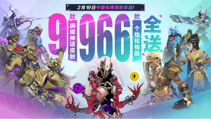 《守望先锋》国服现已回归!为了感谢每一位国服玩家的等待、理解与支持,我们将为所有国服玩家(包括新注册玩家)送出:第1赛季-第9赛季的9款满级神话皮肤,第1赛季-第9赛季的免费+付费高级战令奖励,第10赛季-第14赛季的免费战令奖励,还有可通过挑战活动赢取的限时返场奖励,累计966款个性化物品!具体内容请查阅先前发布的博文。