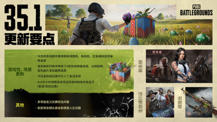 近日KRAFTON(CEO CH Kim)旗下的《PUBG: BATTLEGROUNDS》(以下简称《PUBG》)对正式服进行了35.1版本更新。