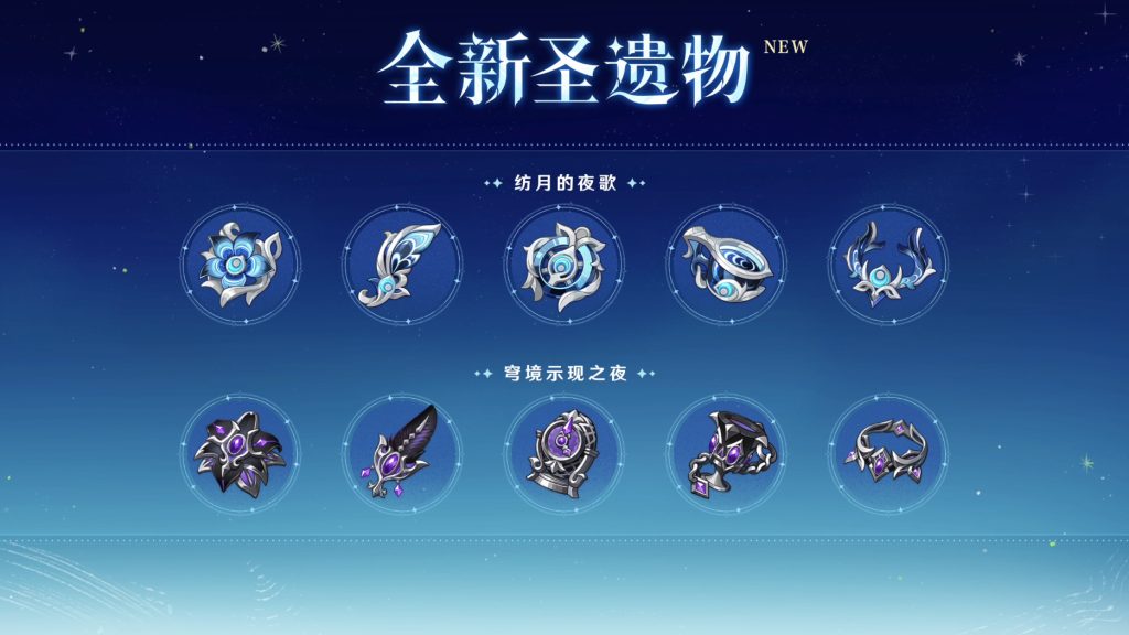 除了新角色之外,全新限定五星法器「纺夜天镜」和全新五星长柄武器「血染荒城」,以及两套新圣遗物「穹境示现之夜」与「纺月的夜歌」也将在「月之一」版本与各位玩家见面。