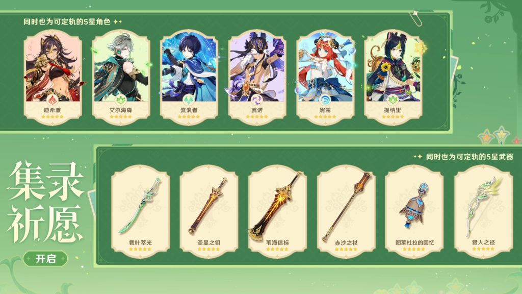 「月之一」版本上半期也将开放集录祈愿,艾尔海森和妮露等须弥角色将会加入。