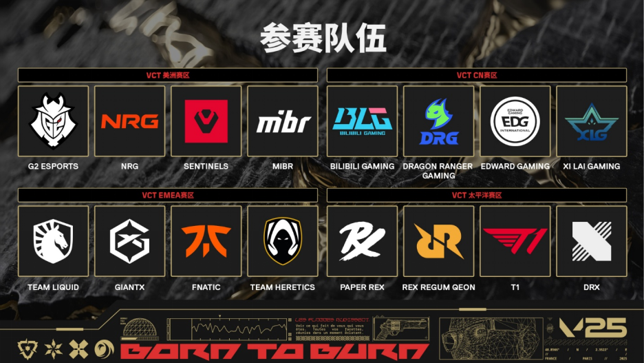 从VCT CN 联赛、VCT 美洲联赛、VCT EMEA 联赛和 VCT 太平洋联赛到全球赛事,最出色的十六支队伍晋级无畏契约冠军巡回赛的最终赛场。其中: