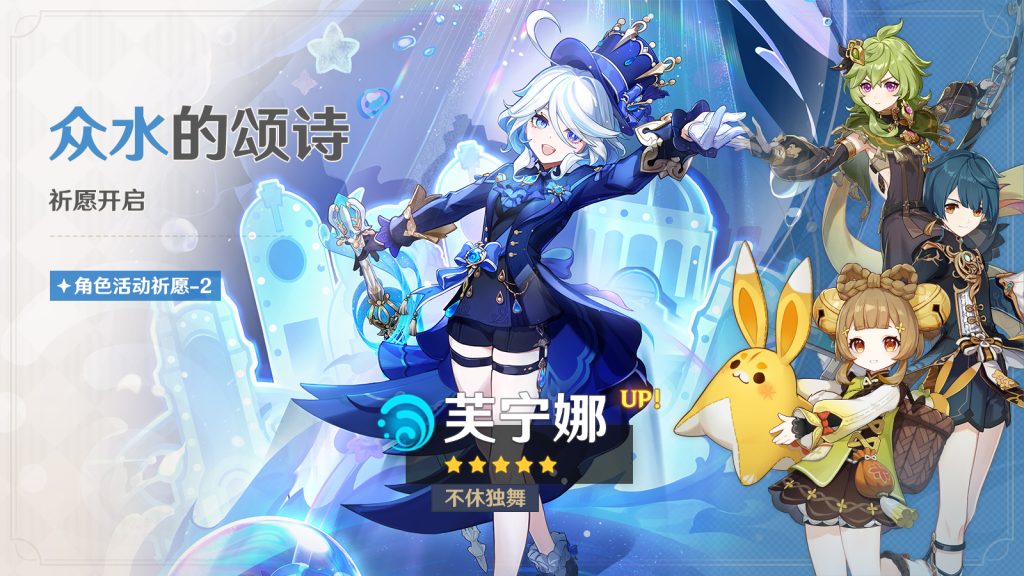 「月之二」版本更新后至2025年11月11日17:59,角色活动祈愿「赤砂的诱言」与角色活动祈愿-2「众水的颂诗」开启,全新限定五星角色「湮沙的秘闻 · 奈芙尔(草)」与限定五星角色「不休独舞 · 芙宁娜(水)」迎来概率UP。