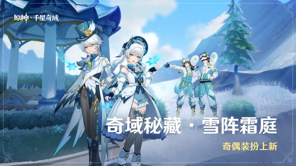 奇偶装扮上线,活动期间,旅行者可以通过「雪阵霜庭」活动颂愿/千星商城获得心仪的奇偶装扮!