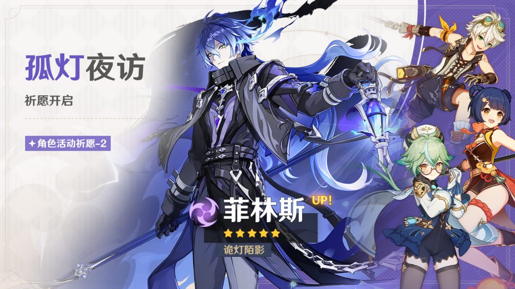 「月之五」版本更新后至2026年3月17日17:59,角色活动祈愿「北风的凯旋歌」与角色活动祈愿-2「孤灯夜访」开启,全新限定五星角色「北风骑士 · 法尔伽(风)」与限定五星角色「诡灯陌影 · 菲林斯(雷)」迎来概率UP。