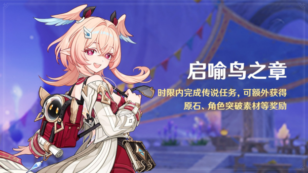 伴随莉奈娅上线,她的传说任务「启喻鸟之章」同步开放,限时完成可额外获得原石、角色突破素材、角色培养素材、蒙德特产等奖励。