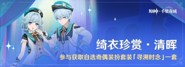 此外,千星奇域奇偶装扮上新,限定传说五星装扮「鳞锋战记」加入活动颂愿;同期「绮衣珍赏·清晖」活动开放,参与可免费获得自选奇偶装扮套装「寻溯时念」一套。