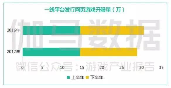 中国网页游戏开服数量的降低,也说明其市场规模仍在萎缩。报告显示,今年排行前十网页游戏开服量约10万,相对2016年下降3万。同时,今年一线平台发行网页游戏开服量约29万,相对2016年减少1.6万。两方面的数据下降情况均能够佐证网页游戏市场的发展情况。