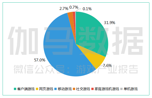 如果聚焦到中国游戏市场收入的细分领域,会发现移动游戏仍然是中国游戏市场收入的最重要构成,而且有愈演愈烈的趋势。报告显示,今年的中国游戏市场中,移动游戏市场实际销售收入1161.2亿元,份额继续增加,占57.0%;客户端游戏市场实际销售收入648.6亿元,份额减少,占31.9%;网页游戏市场实际销售收入156.0亿元,份额大幅减少,占7.6%;家庭游戏机游戏市场实际销售收入13.7亿元,份额有所增加,占0.7%。