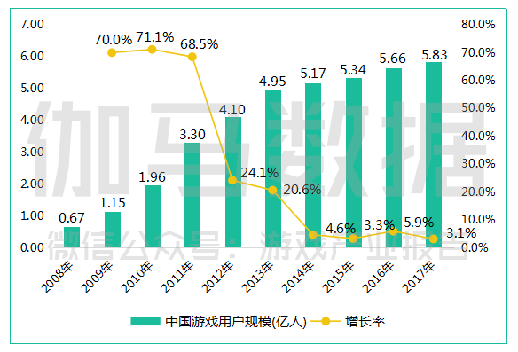 不过,与去年相比,中国游戏用户数量增幅并不明显。报告显示,中国游戏用户规模达到5.83亿人,同比增长3.1%。综合2014年至2017年的用户数据来看,中国的游戏用户规模增长速度已经处于较低的状态,游戏用户数量已经趋于饱和。